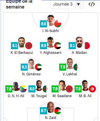 عرفت التشكيلة المثالية لختام دور مجموعات بطولة كأس العرب، الجارية وقائعها بقطر إلى غاية الـ 18 ديسمبر الحالي، تواجد لاعبين اثنين من المنتخب الجزائري الرديف.